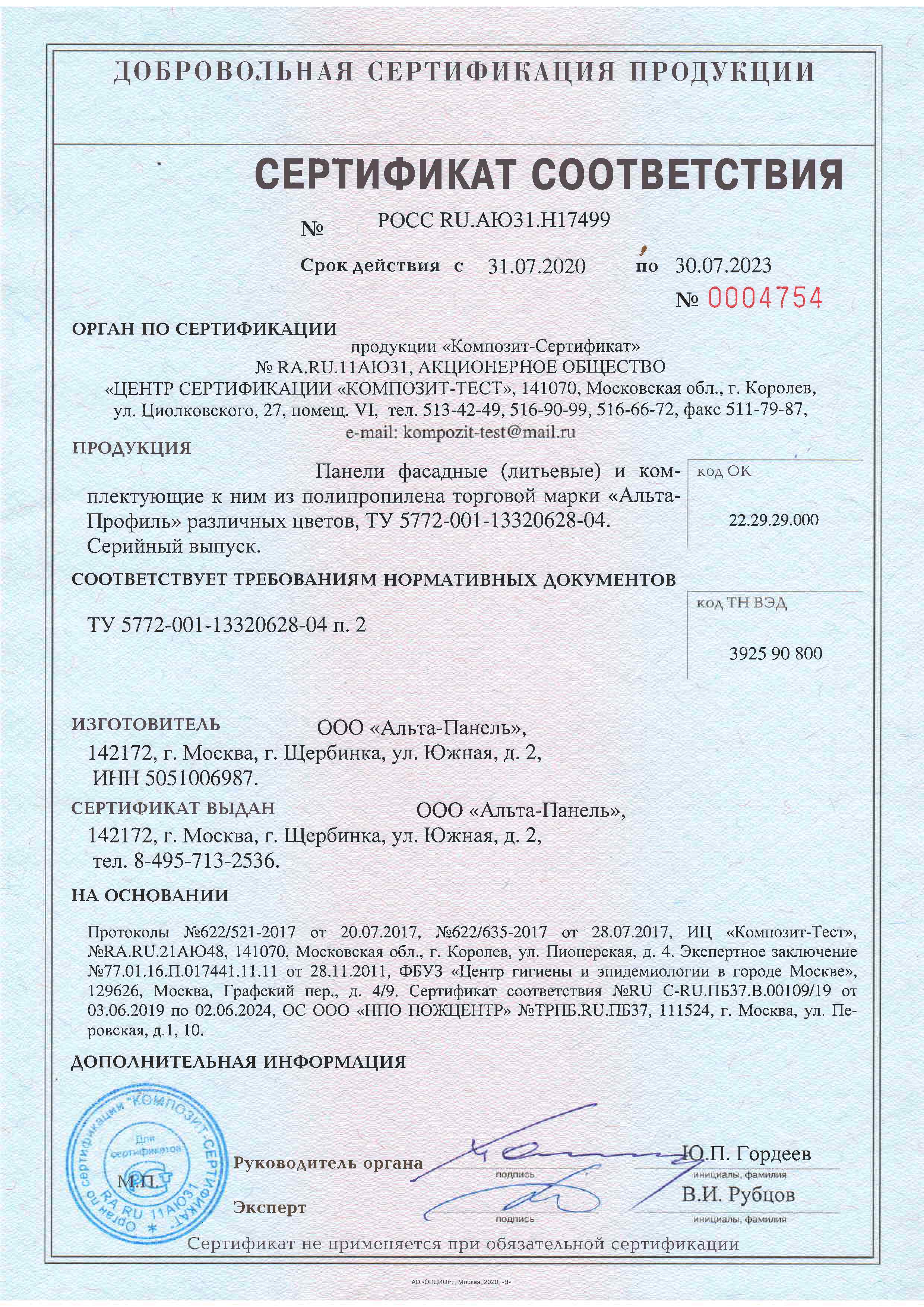Подтвержденное сертификатами и действующими ГОСТ
